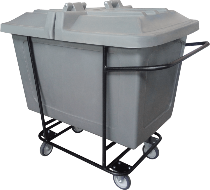 Vendida com rodas de 4", com estrutura zincada, com ou sem tampa.
