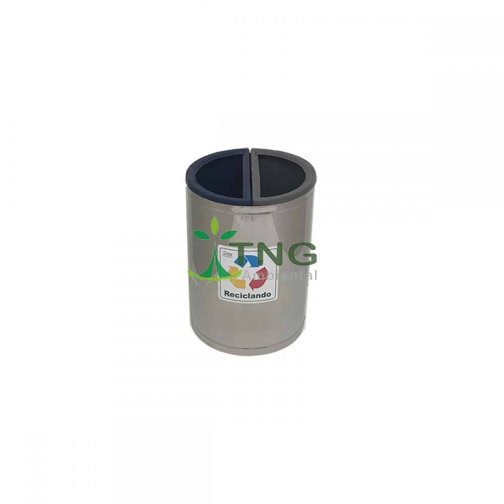 Recipientes projetados para a segregação de diferentes tipos de resíduos recicláveis na fonte geradora, apresentando compartimentos internos separados que permitem o descarte simultâneo e organizado de materiais distintos (como papel, plástico, vidro e metal) em um único móvel, otimizando o espaço e incentivando a prática da coleta seletiva.