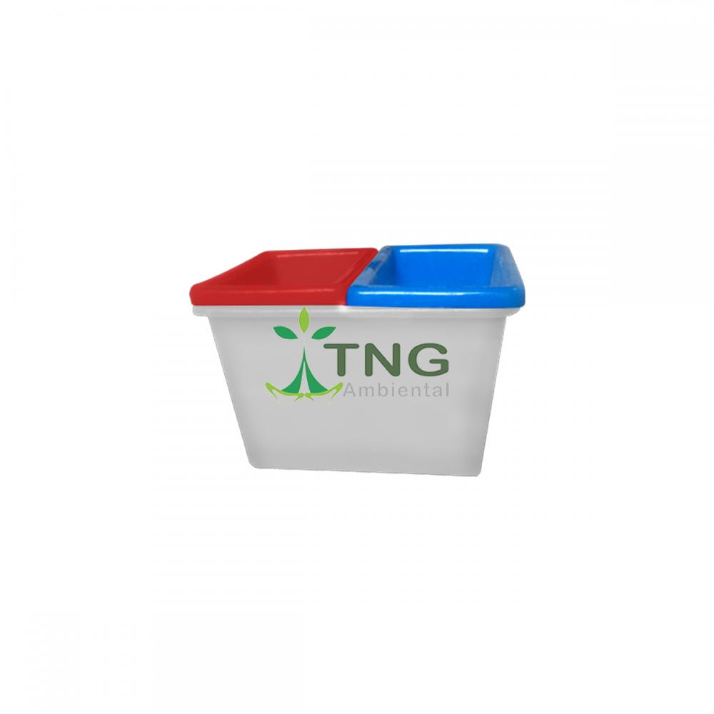 Recipientes projetados para a segregação de diferentes tipos de resíduos recicláveis na fonte geradora, apresentando compartimentos internos separados que permitem o descarte simultâneo e organizado de materiais distintos (como papel, plástico, vidro e metal) em um único móvel, otimizando o espaço e incentivando a prática da coleta seletiva.