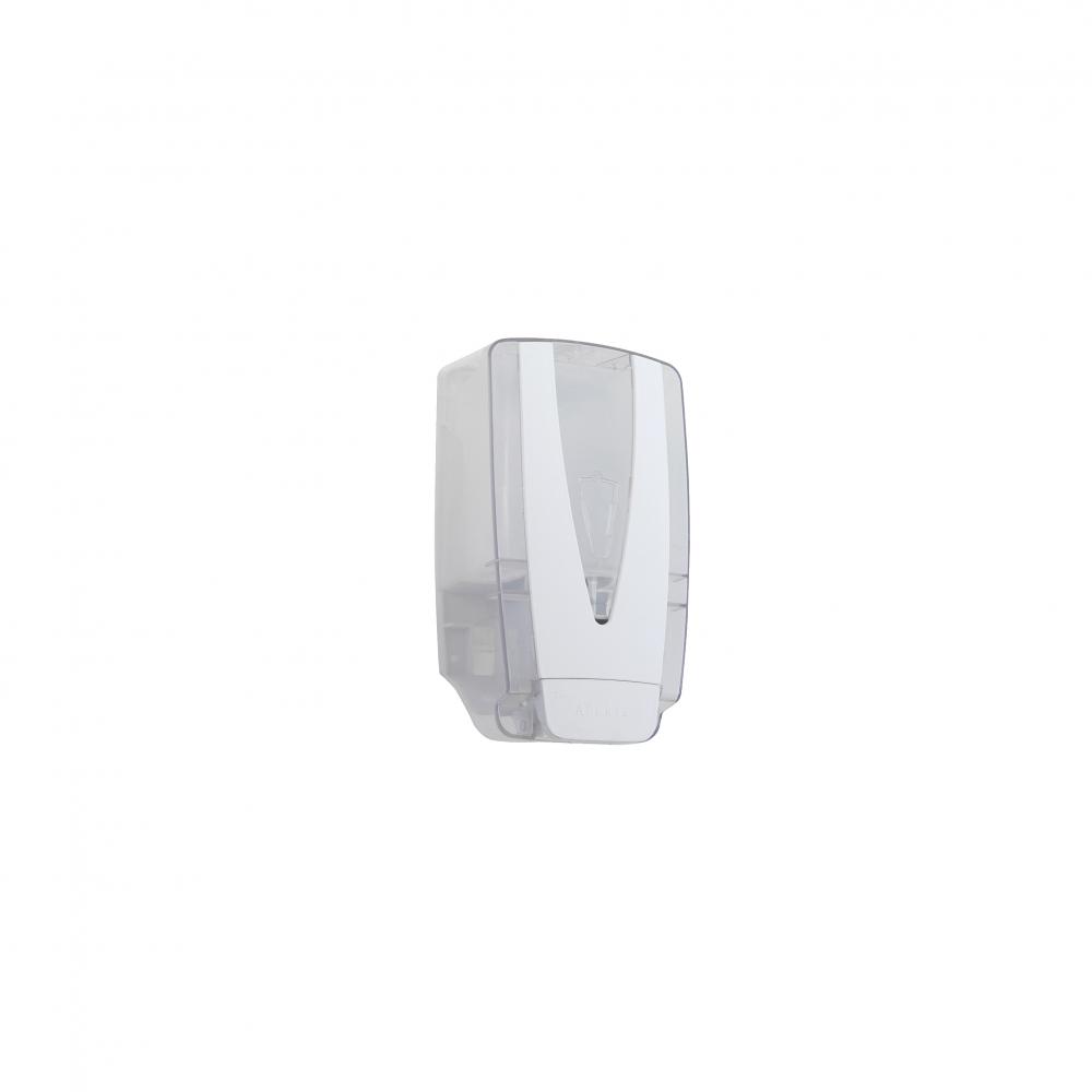Injetada em plástico ABS branco, visor cristal transparente, o que permite o controle da substituição do sabonete.
