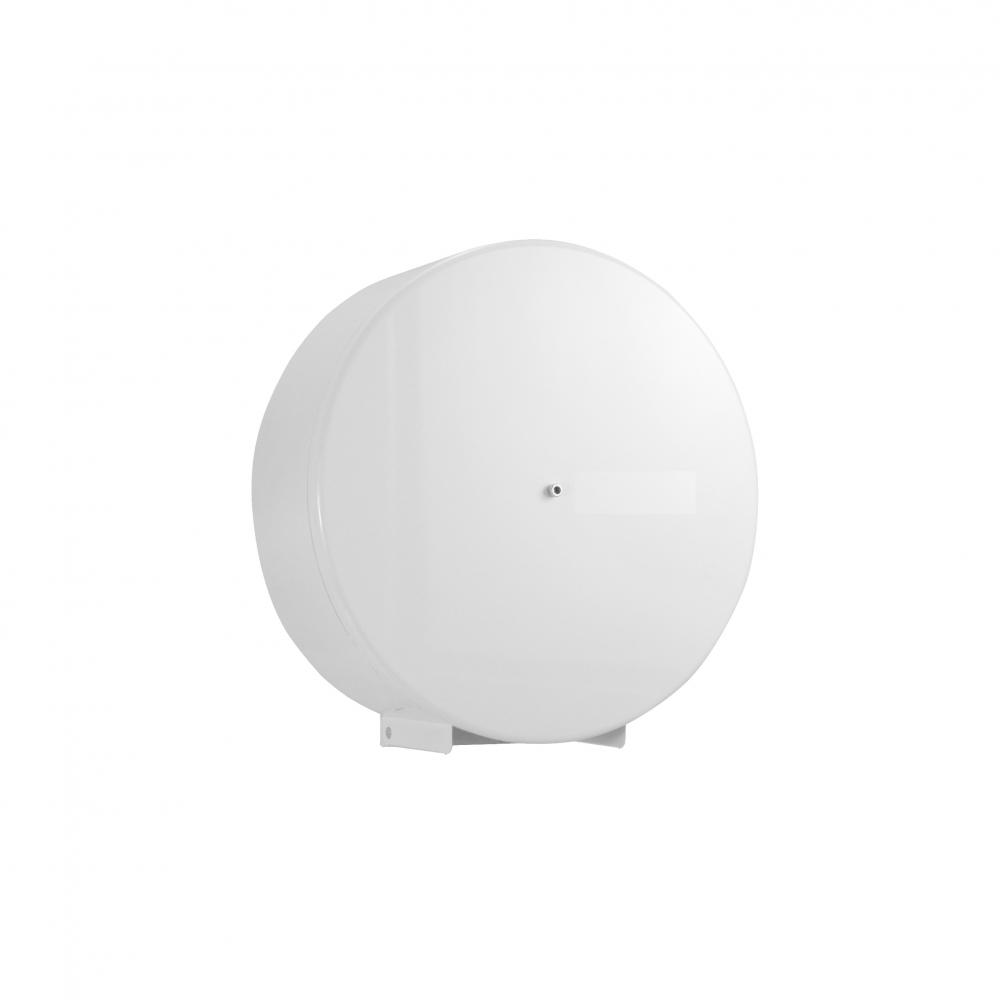 Produzido em chapa de aço carbono 1020 e acabamento pintura eletrostática branca (epóxi). O sistema de fechamento é feito através de fechadura central tipo “Allen”, que mantém o produto trancado, evitando, assim o furto do papel, bem como a abertura indevida da tampa do suporte, possui visor para controle da reposição do papel.